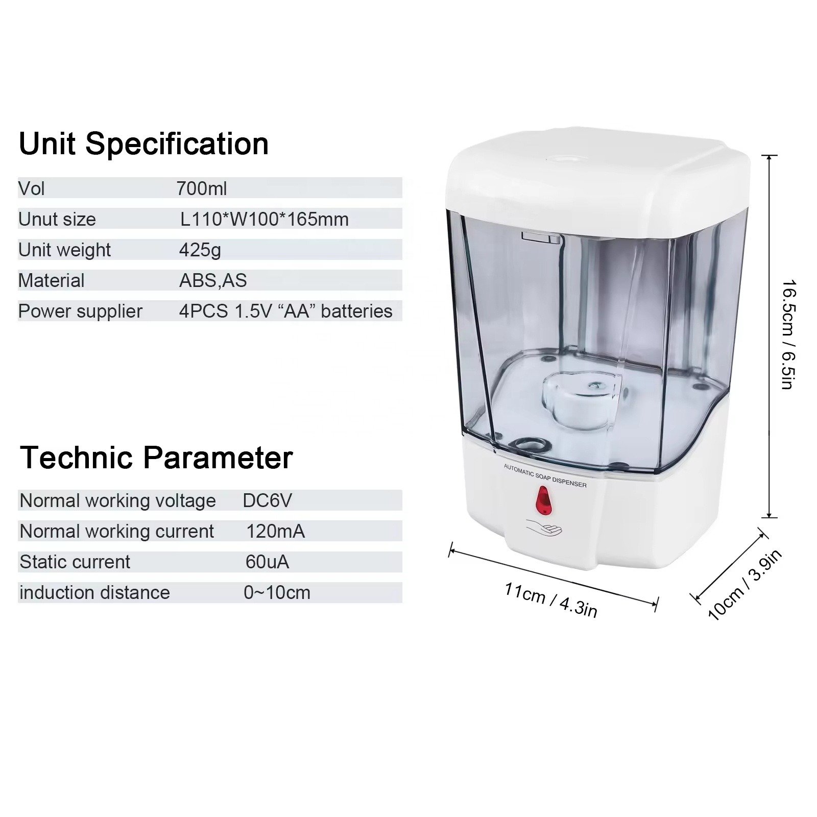 Speaking of the tank, this dispenser features a large 700ml capacity , which saves you time by reducing the number of refills needed. You can even buy soap in bulk, helping you cut costs while reducing waste. This large capacity is especially useful in high-traffic spaces such as offices, hotels, hospitals, schools, and restaurants.