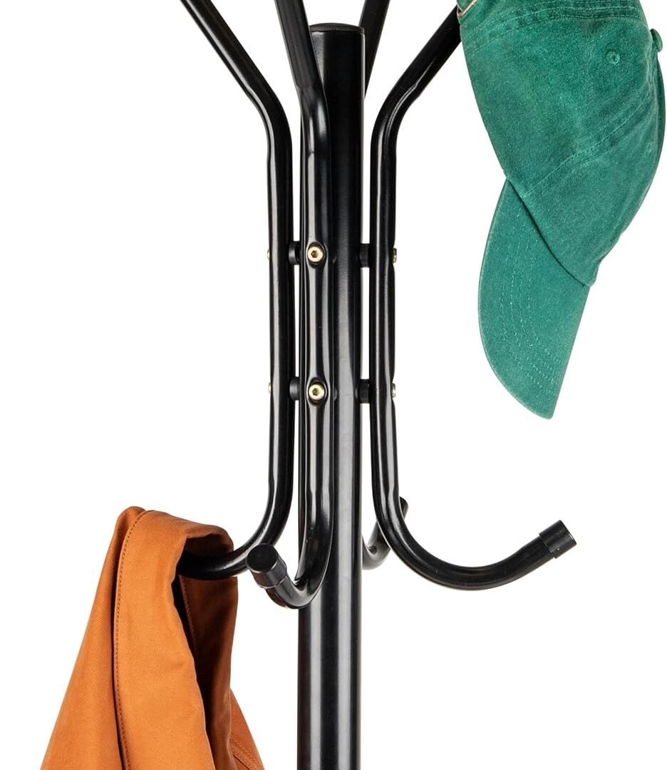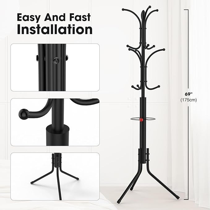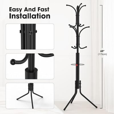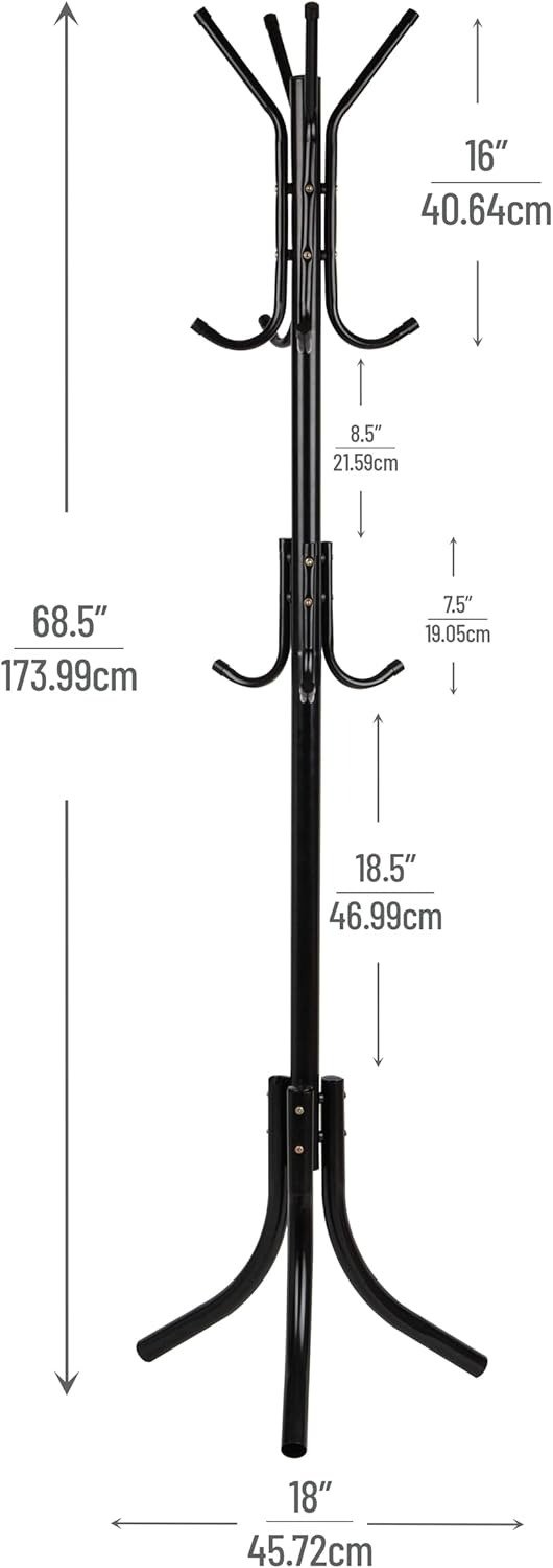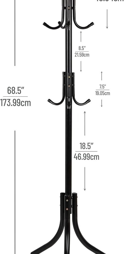 Crafted from durable yet lightweight metal, each hook supports up to 4.4 lbs, ensuring strength without sacrificing portability. The sleek black finish adds a modern, professional touch that blends seamlessly with any dΓ©cor. Measuring 18″L x 18″W x 68.5″H, this compact rack offers efficient storage and easy placement wherever you need it