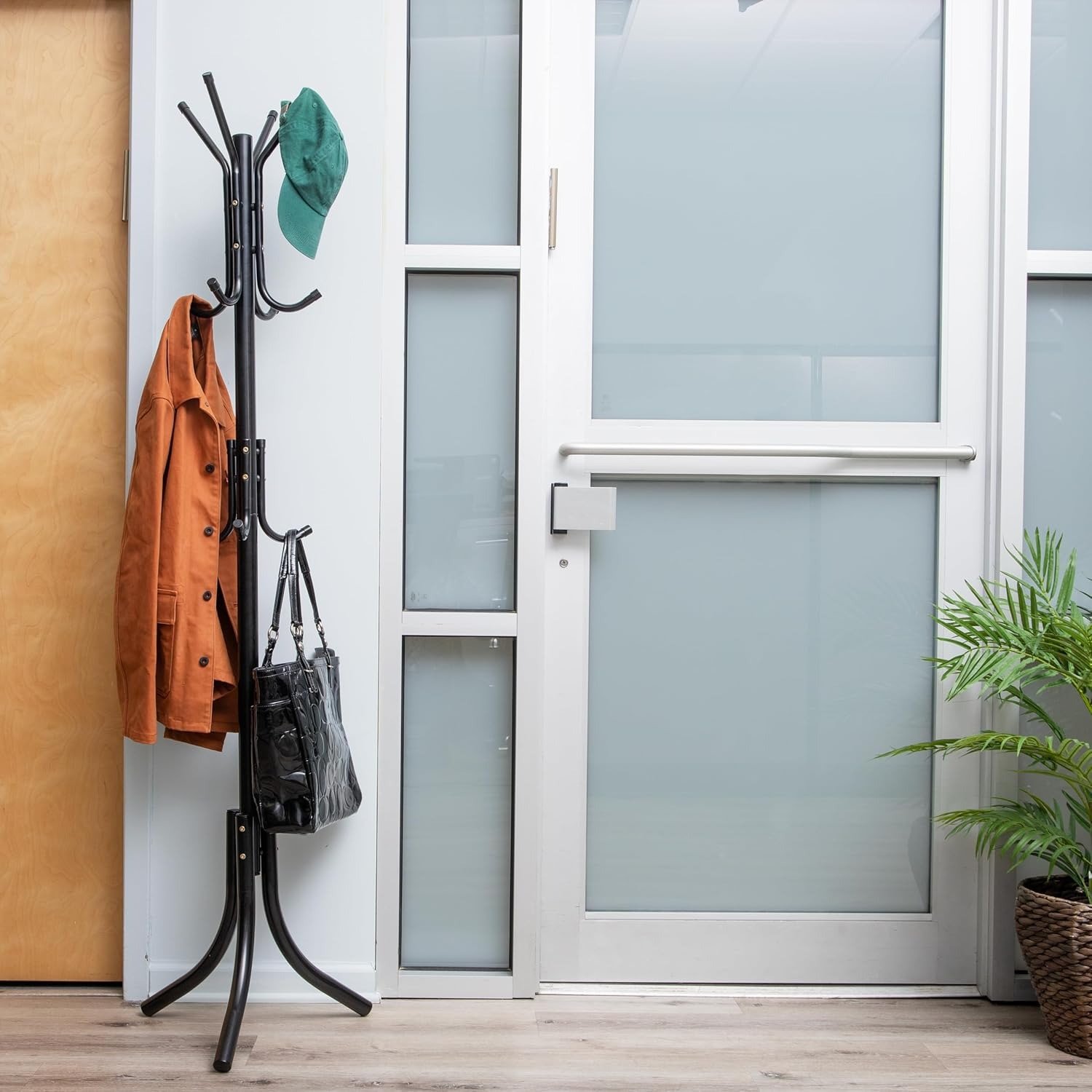 Keep your space organized and clutter-free with this Metal Three-Tier Coat Rack. Designed for both style and functionality, it features 11 sturdy hooks that provide ample storage for coats, hats, scarves, bags, and umbrellas. The vertical design saves valuable floor space, making it ideal for small rooms, entryways, or offices.