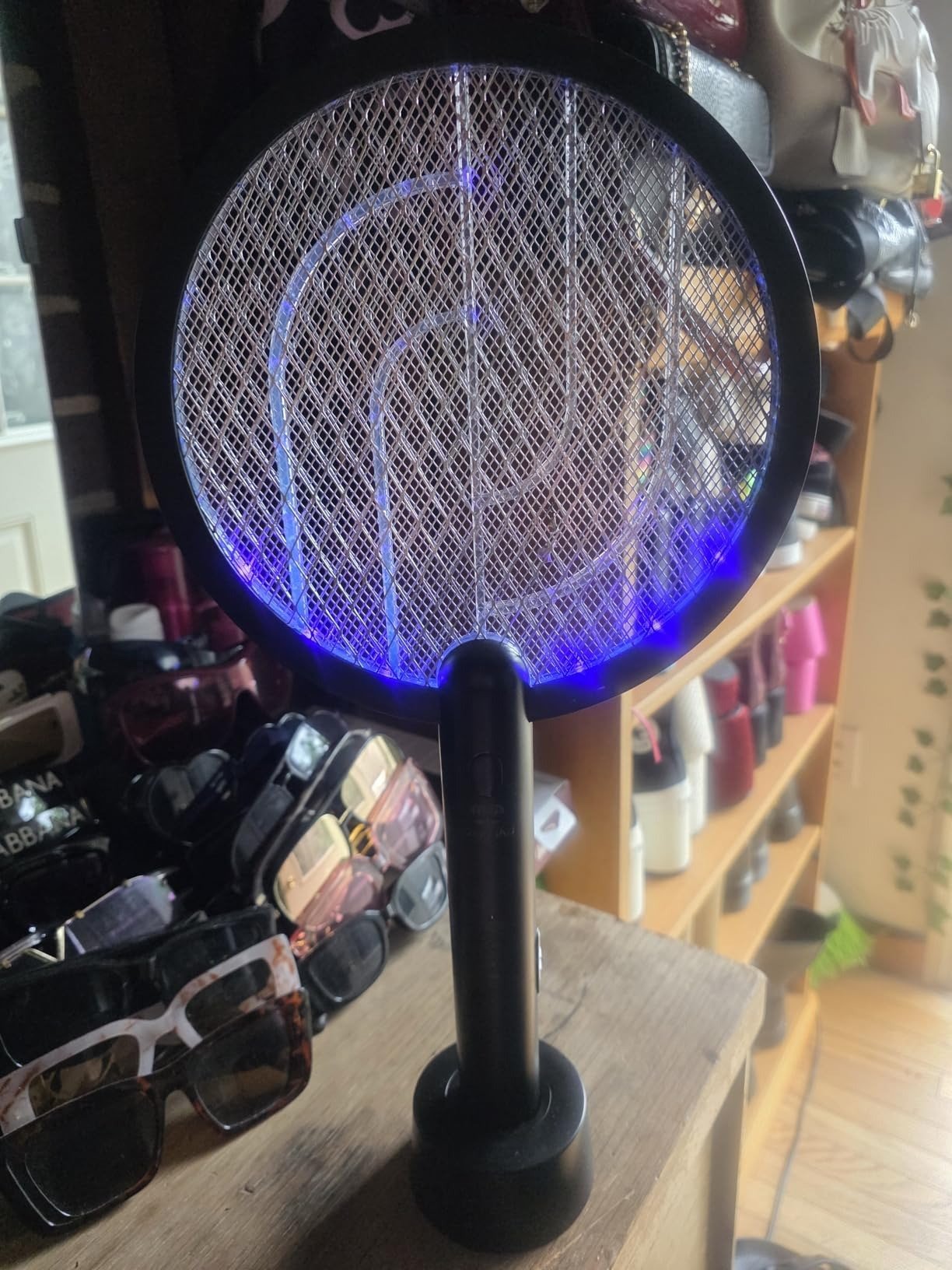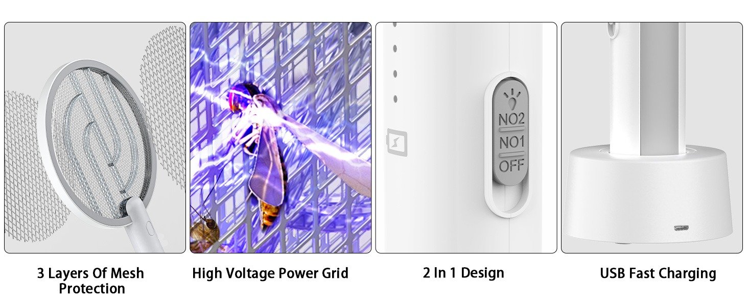Wow! I’m amazed at how efficient this zapper racket is! I ordered the set of 2. It arrived on time with full charge ready to use. I love that I can place one racket to auto mode on the base charger that zaps away as I also use the second racket to zap around the room. Highly effective! Summer is my favorite season but brings mosquitos, house flies & fruit flies. Within the first 2 hours majority of the pesky bug population was gone. The first crackle pop sounds scared me! Sounded like fireworks lol but definitely gives me peace of mind and a more comfortable ambiance. The design is aesthetically pleasing and modern. The price was also good in comparison to competitors pricing. I highly recommend this product & would repurchase if needed. Mess free & easy to use. No more spraying or squashing bugs…simply flip the switch to ON & zap away. Works so quickly!!!