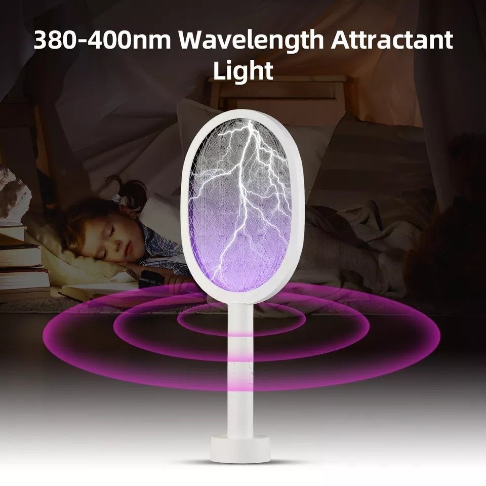 Powerful and efficient: Equipped with a 4000V high-voltage power grid, it can continuously impact 50 times without the need for multiple waves, only one swing is needed. The built-in ultraviolet lamp beads emit purple light at night, causing them to actively approach the electric racket and immediately receive an electric shock