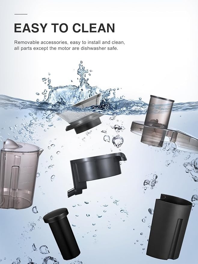Safety comes first โ the locking arm system ensures the juicer only operates when properly secured, while the overload protection automatically shuts off the motor to prevent overheating. Cleaning is simple with detachable parts that rinse easily under running water.